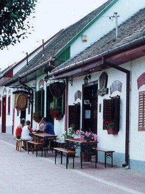 Het wijnhuis is gelegen in een rustige zijstraat tussen andere wijnhuizen maar het ” centrum ” van het dorp is op loopafstand dus alles heerlijk dicht in de buurt.
