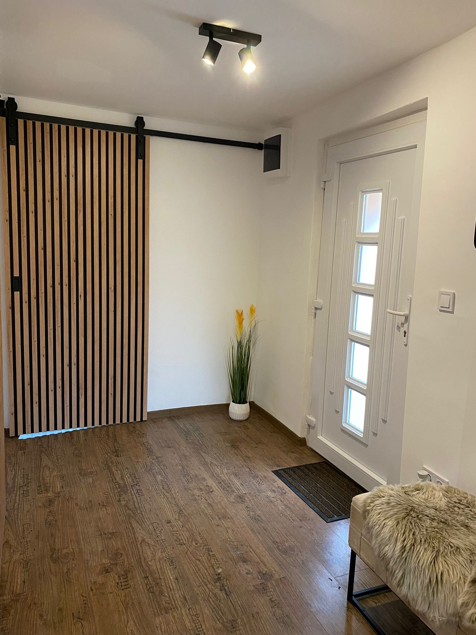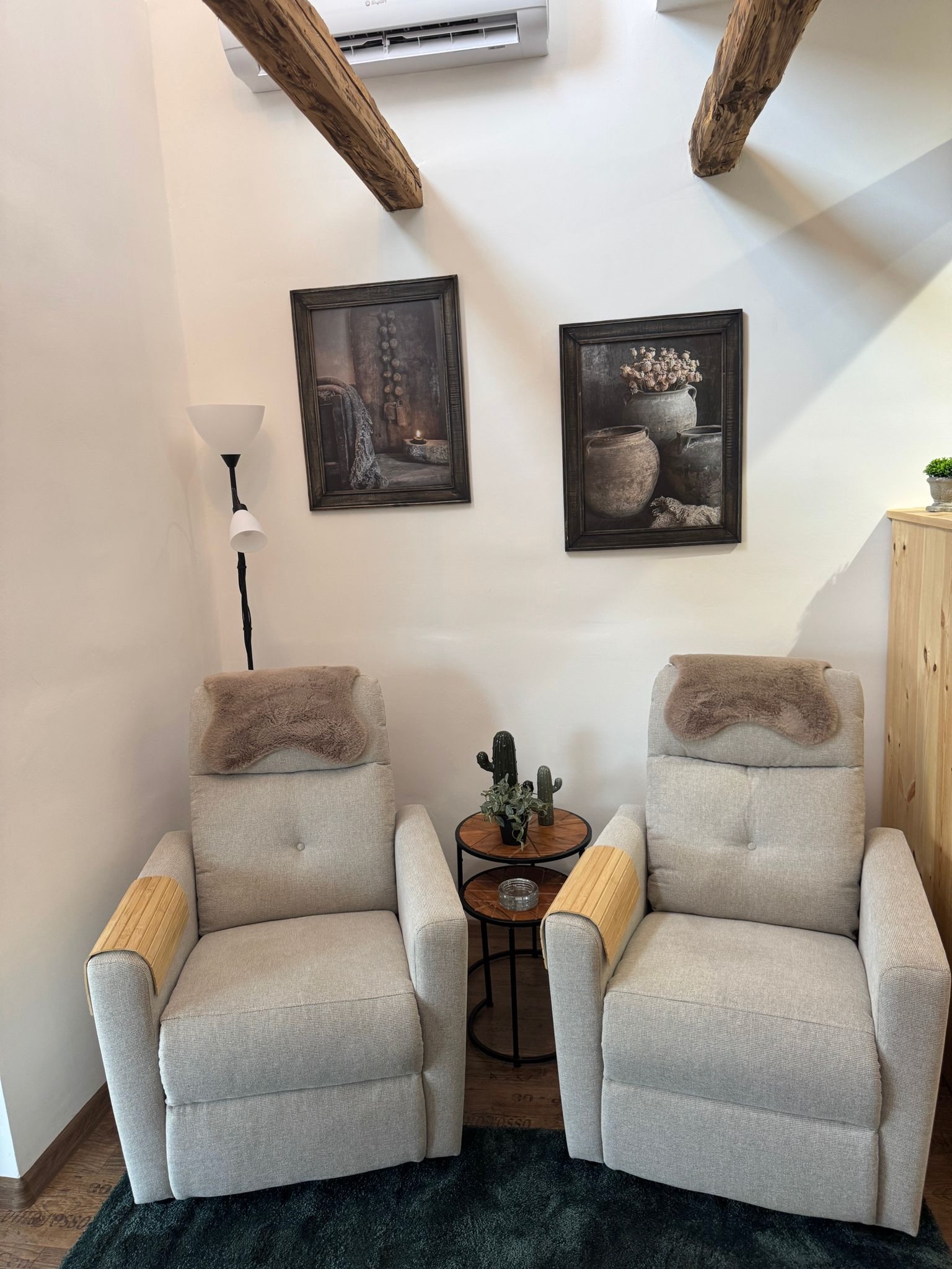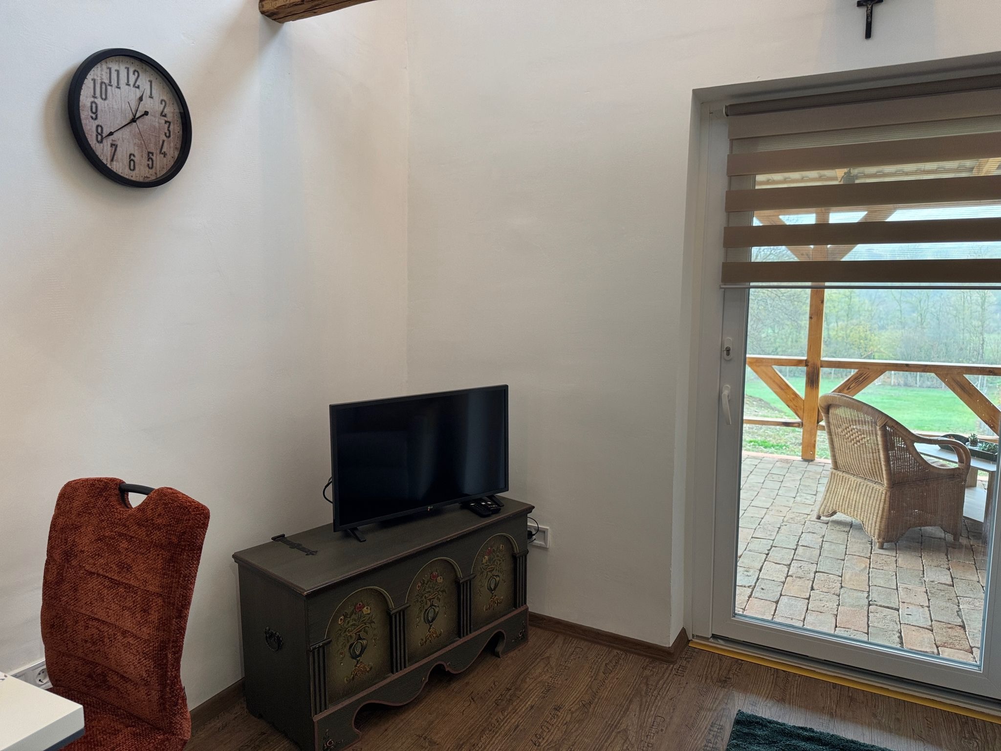 Vanaf het royale, overdekte terras geniet je van een adembenemend uitzicht over de vallei. Beneden, in het eigen “bos”, bevindt zich een knus overdekt zitje — en helemaal aan het einde stroomt een smal, kabbelend beekje. Alles is aanwezig om volop te genieten van een ontspannen verblijf.
