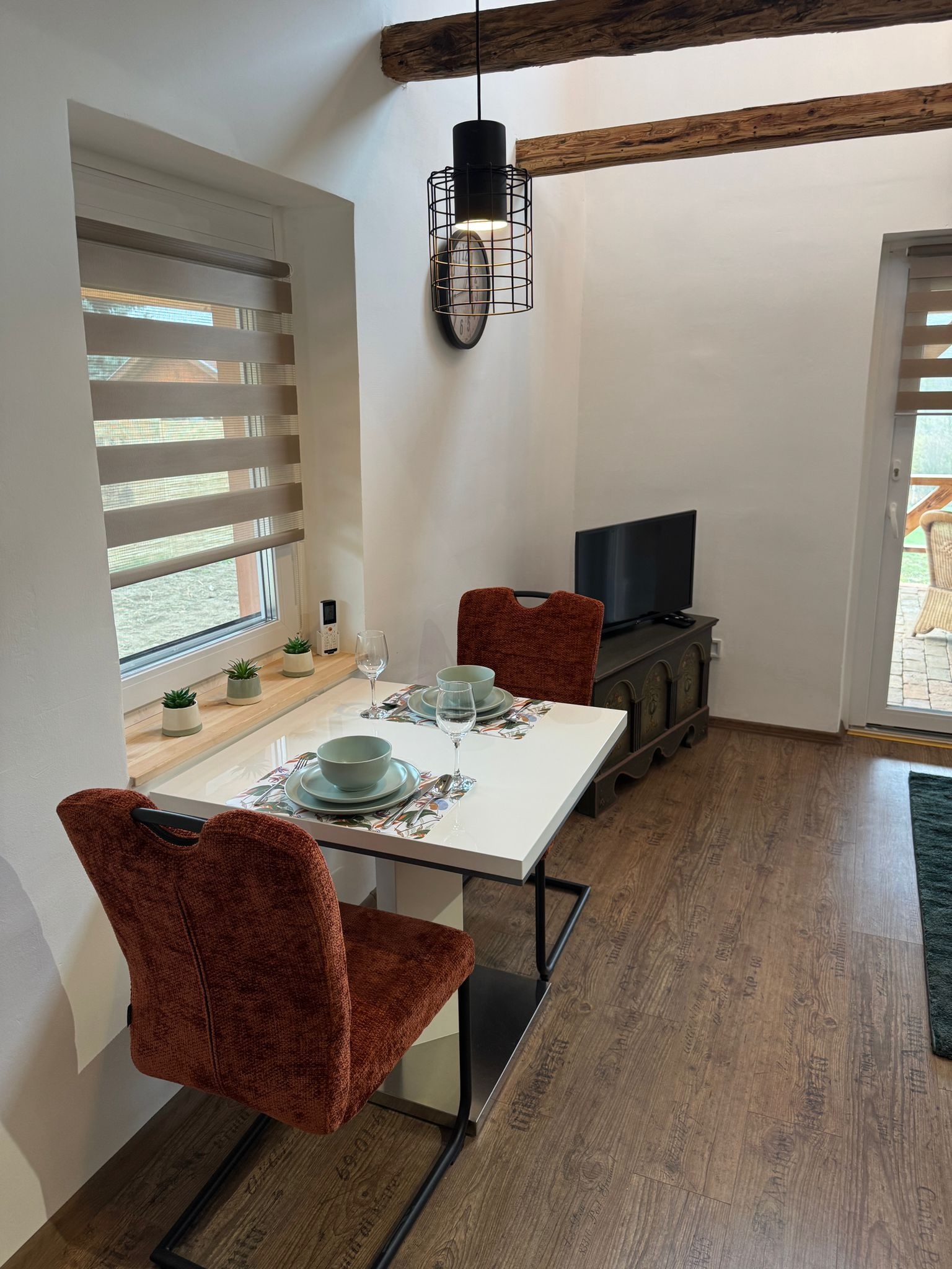 Het vakantiehuis is geschikt voor 2 personen en voorzien van alle moderne gemakken. Er is een gezellige woonkamer met open keuken, een hal, een badkamer met toilet en een ruime slaapkamer.