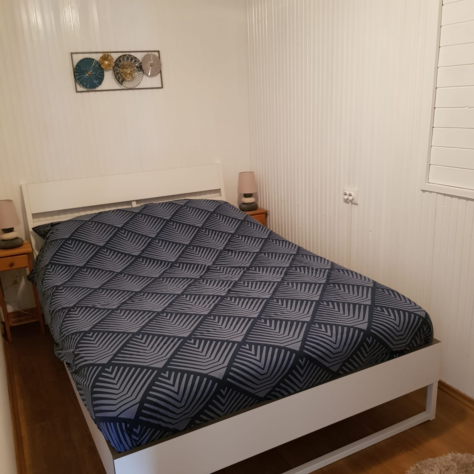 Huisje klein maar fijn heeft 1 gezellige slaapkamer met een tweepersoons bed. In de opbergkast is meer dan genoeg ruimte voor kleding e.d.