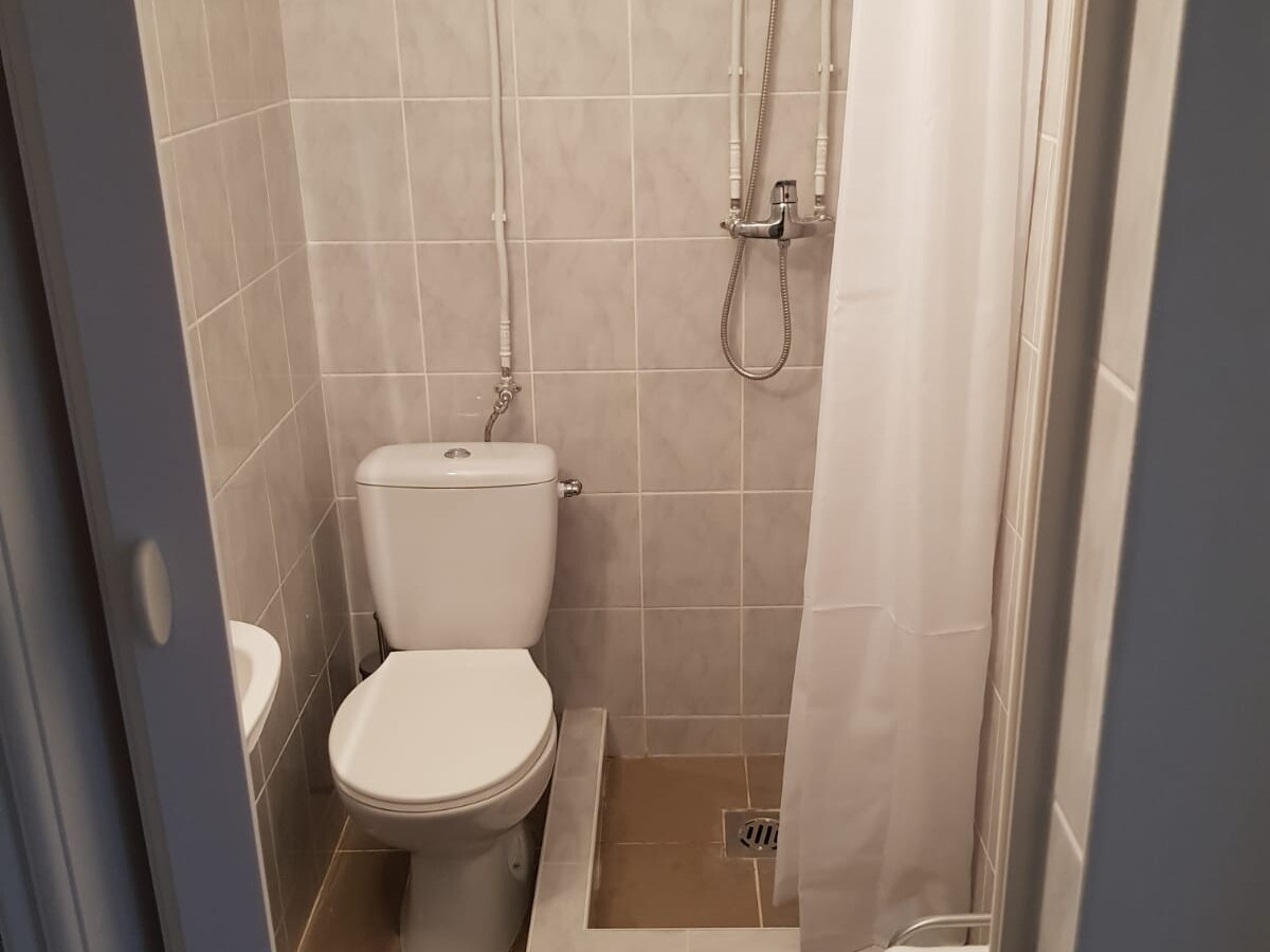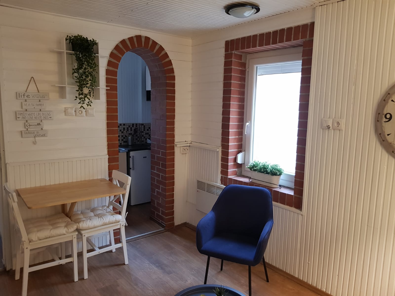 met toilet en vanuit de hal komt men in een gezellige woonkamer en via de woonkamer in de slaapkamer en de keuken.