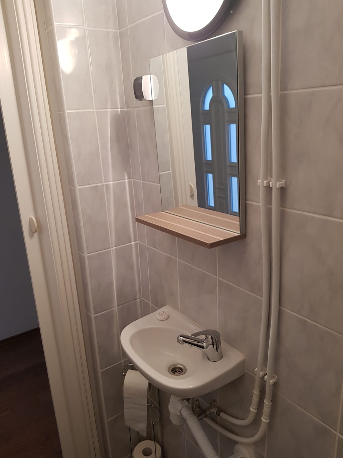 De badkamer met toilet is wederom klein maar fijn maar alles is wel aanwezig…dus wat wil men nog meer.