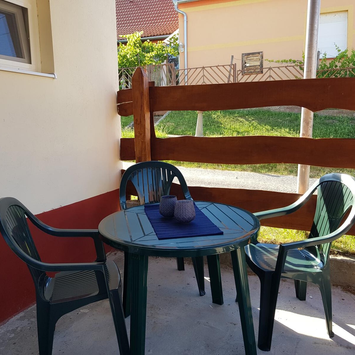 Ons kleine vakantiehuis “Huisje Klein maar Fijn” ligt midden in het centrum van het dorp waardoor veel voorzieningen binnen 150 meter liggen zoals: speeltuin, Kultúrház, postkantoor en een supermarkt.